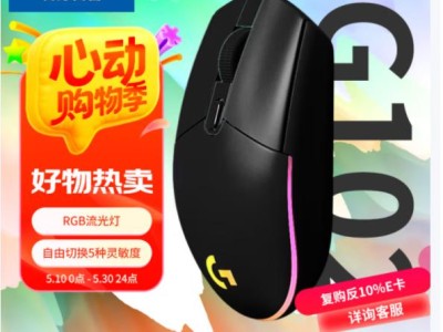 罗技(G)G102第二代游戏鼠标 RGB流光灯效鼠标 轻量化 游戏级8000DPI传感器 黑色 200-8000DPI