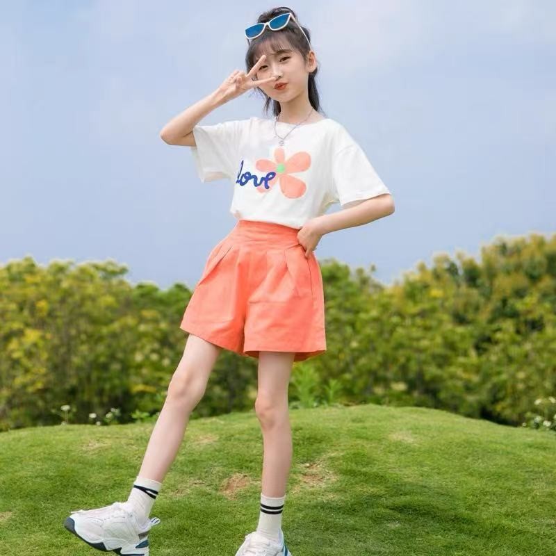 夏季女童套装新款儿童短袖短裤中大童运动两件套女孩时尚宝宝洋气图1