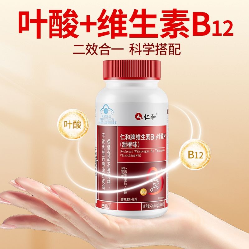 仁和叶酸60片白发成人中老年男女士维生素b12黑发活性治正品