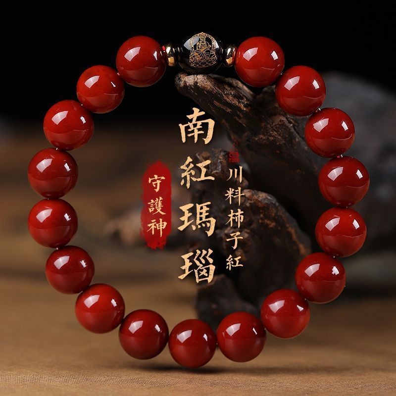 天南南红手串男女川料柿子红玛瑙本命佛手链本命年转运水晶礼物图1