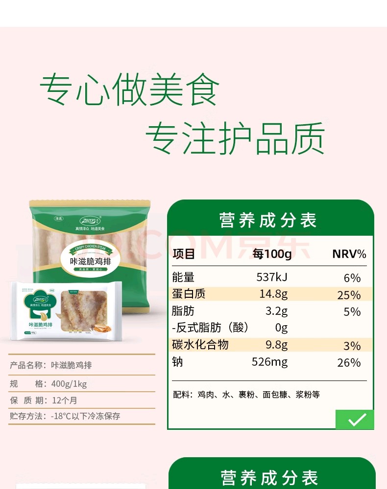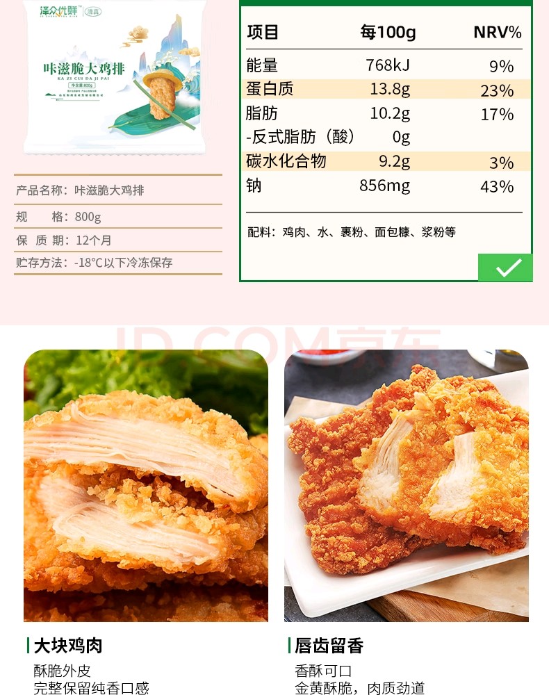 泽众(zezon)咔滋脆鸡排冷冻半成品炸鸡裹粉鸡胸肉清真食材空气炸锅食品